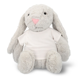 Plush rabbit with t-shirt 100% polyester, printable by dye sublimation printing.