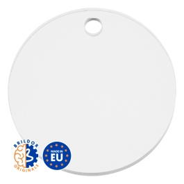 Transparent acrylic pendant of Ø5 cm and 3 mm thick, customisable by laser engraving.