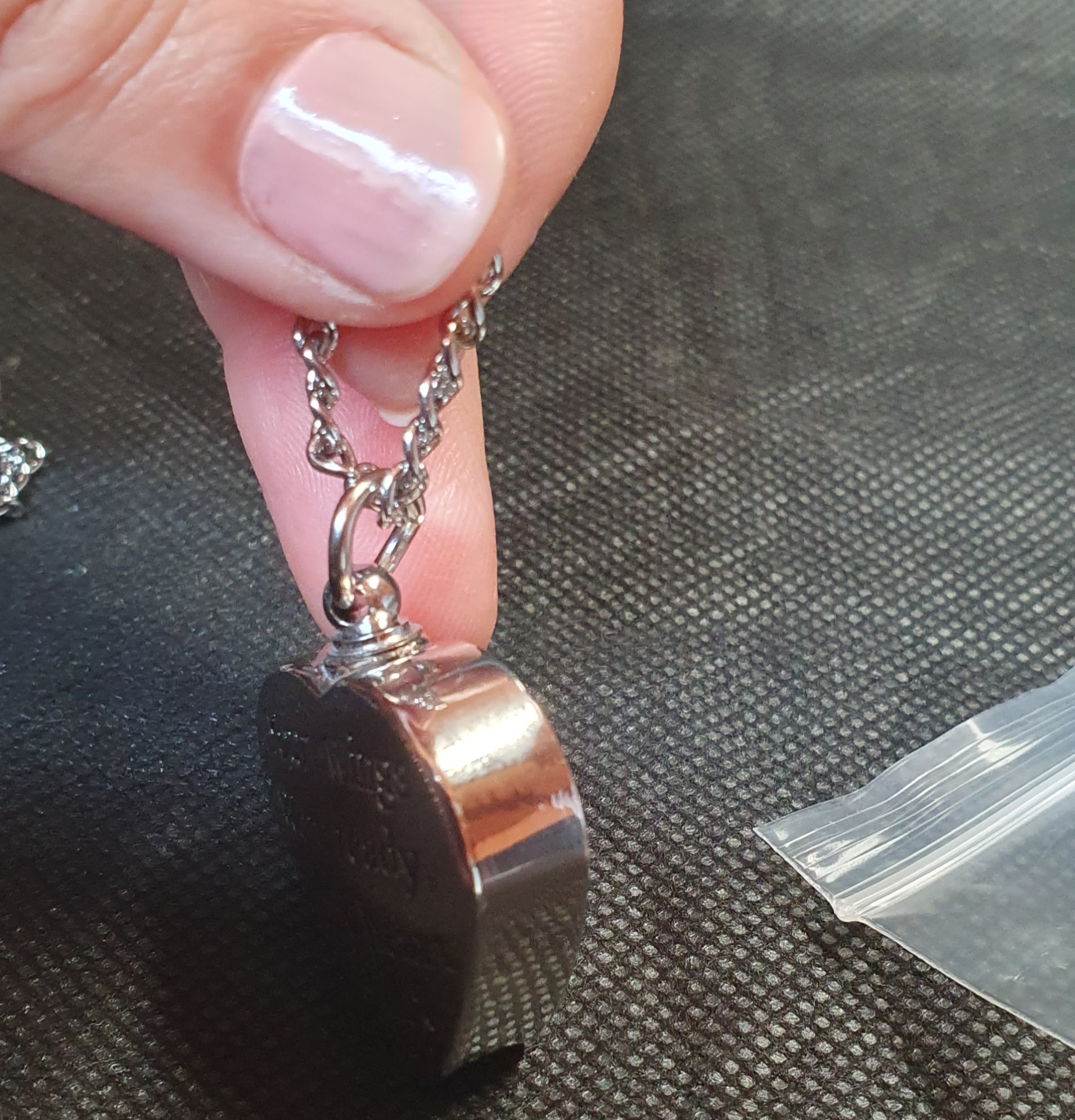 Collar para cenizas con lámina personalizable por sublimación.