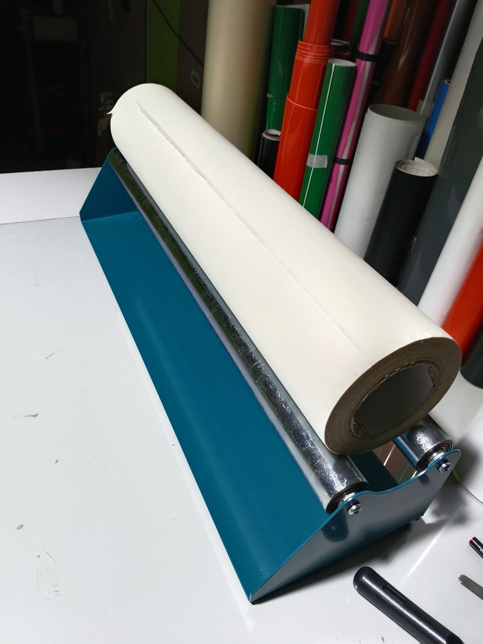 Soportes de sobremesa para facilitar la manipulación de materiales en formato rollo: papel, vinilo, film...