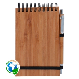 Bloc de anillas con bolígrafo y tapas de madera de bambú