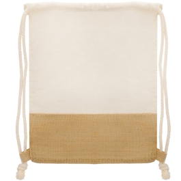 - Confeccionada con algodón de 120 g/m2 color crudo y franja de yute.