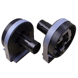 Práctico accesorio para el premontaje de rollos con anchos o gramajes distintos. Pieza de repuesto del portarrollos que viene de serie con la impresora.