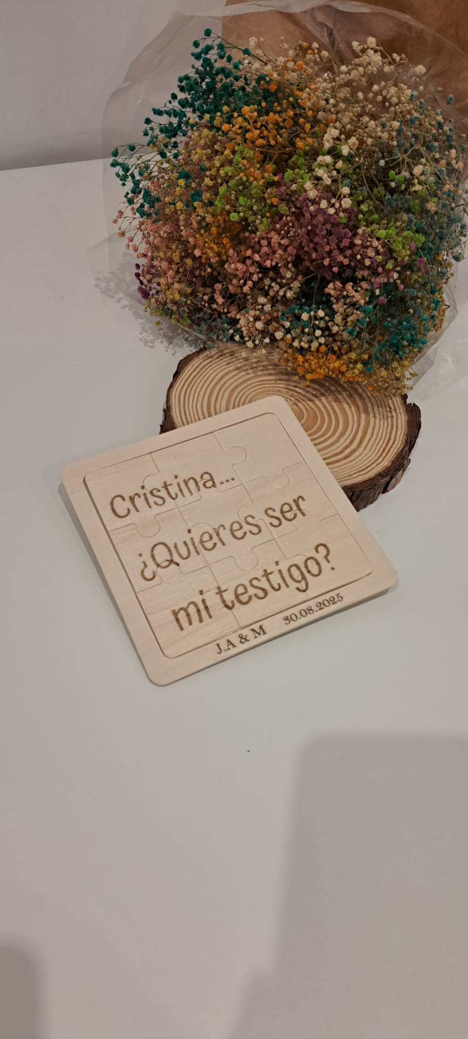 Puzzle de 9 piezas personalizable mediante las técnicas de grabado láser y serigrafía.