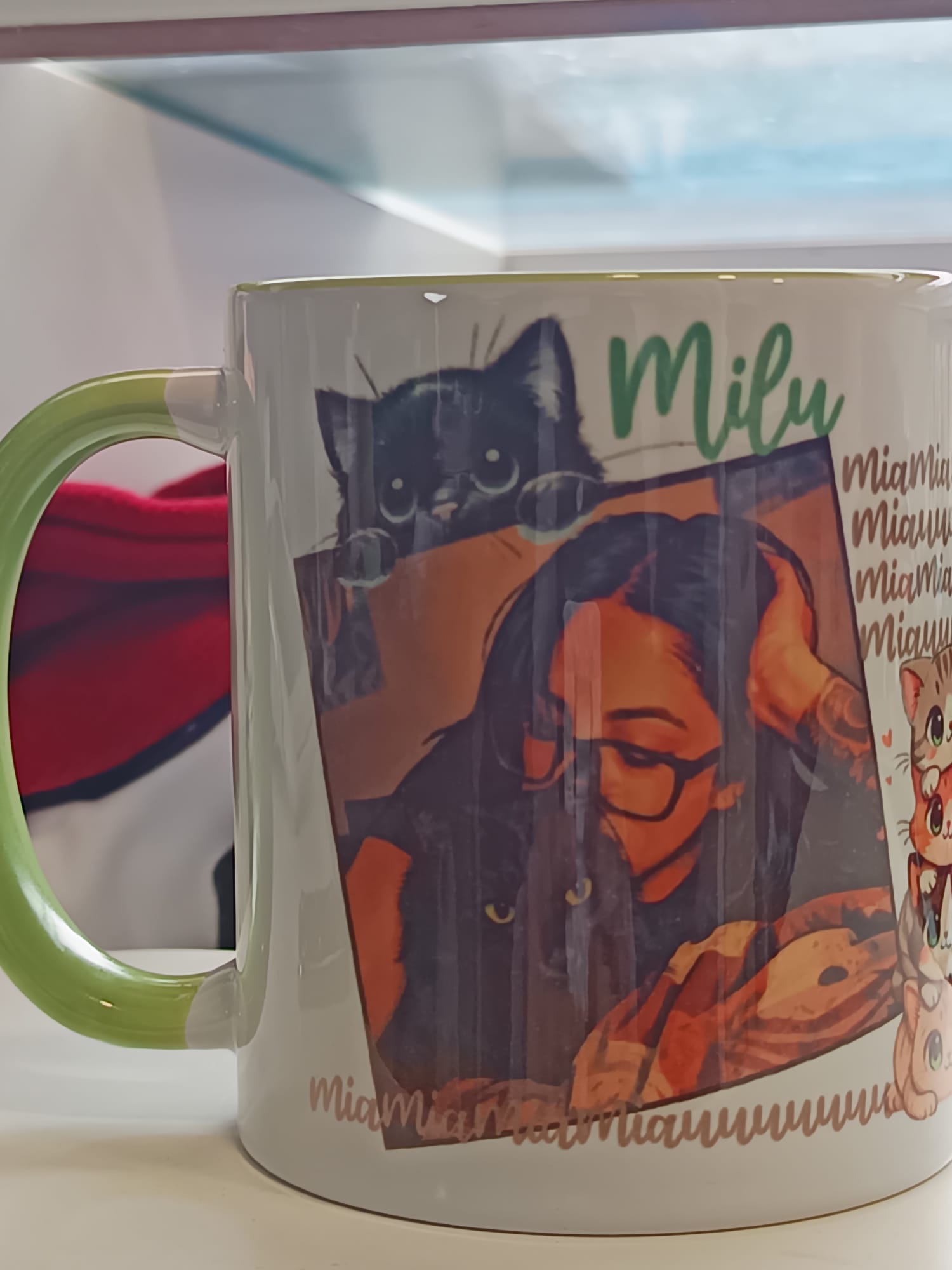 - Coloca el papel impreso alrededor de la taza y fíjalo con cinta térmica adhesiva