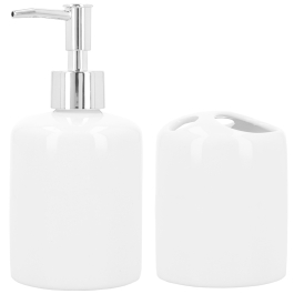 Distributeur de savon liquide et porte-brosses à dents, personnalisables par sublimation.